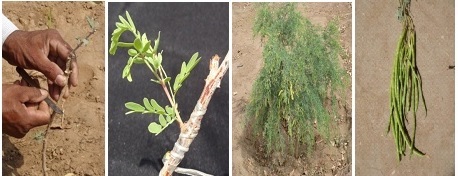 Its seeds require pre-treatment. Soaking the seed in hot water for 24 to 48 hours gives good germination. It has 80-90% germination efficiency. Its germination is completed between 2 to 6 days. After pre-treatment sowing is done in the month of February in a 12.5 x 30 cm bag filled with soil compost mixture. With regular watering, weeding, fertilizing from time to time and the use of insecticides when required, the plant attains a plantable height till the monsoon. Plants do not tolerate excess moisture. During plantation in the area, the plant is transplanted by cutting the bag very carefully keeping the soil of the roots intact. So that it doesn’t get jerked unnecessarily. Transportation should also be done carefully before planting and before transportation, it is necessary to remove the unnecessary grown roots by changing the plant well in nursery bed.