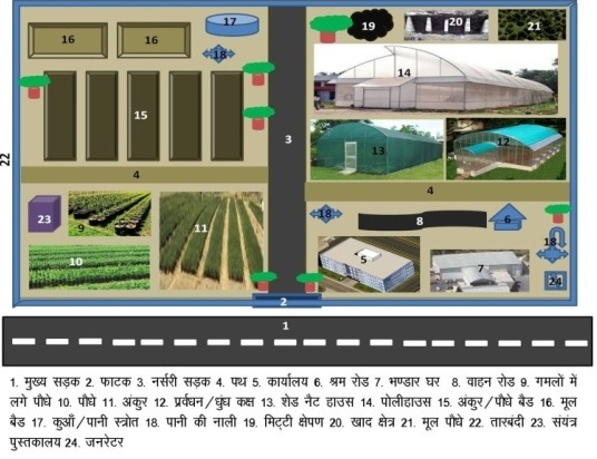 छ) प्रसार संरचनाएं: प्रसार के लिए, नियंत्रित वातावरण में पौध उगाने के लिए तैयार संरचनाओं जैसे ग्रीन हाउस, पॉली टनल, कल्चर रूम, हार्डनिंग चैंबर और मिस्ट चैंबर की आवश्यकता होती है।